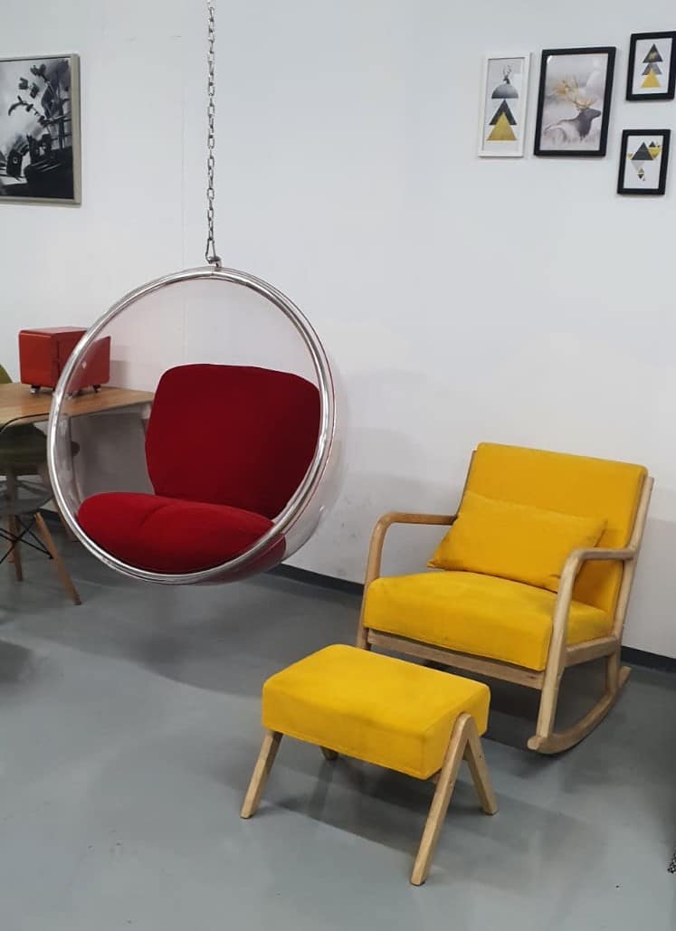כסא נדנדה מרופד מתצוגה כולל הדום
